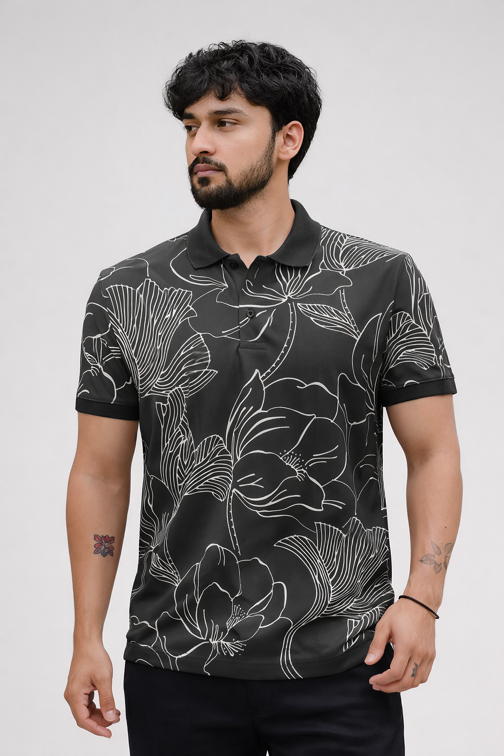 Crafted from soft, breathable fabric, this polo ensures all-day comfort while maintaining a clean and structured fit. The contrast black collar and sleeve cuffs enhance the overall design, giving it a sharp and contemporary finish.